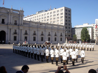 モネダ宮殿は、その名の通り(モネダ=「お金」の意)、もともとは造幣局として建設され(1805年)、その後大統領府として使用されるようになる(1846年〜)。そして、1973年、チリの独裁者と言われるピノチェトによるクーデターで炎上。時の大統領アジェンテがここで自ら銃で自殺したという壮絶な歴史をもつ。