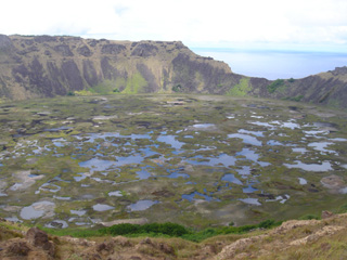 11時過ぎ、気持ちのいい昼前の陽光の中、僕はTシャツに短パンという軽装で、颯爽と自転車にまたがり、まずはハンガロア村から南へ向かった。島の最南端に、ラノ・カウという火山があり、カルデラ湖の近くにはオロンゴの儀式村跡がある。