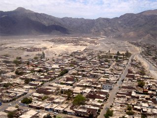 飛び立ったセスナからは、ナスカの街がまず見える。街の周りは茶色の砂地と不毛な岩山が見渡す限り広がっている。ここは、ペルー太平洋岸の広大な乾燥地帯である。雨はほとんど降らない。