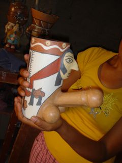 最後、この陶芸家の陶芸工房を無料で見学させてくれるという。彼女は二人の兄とともに、兄妹で陶芸工房を運営している。だがなかなか陶器は商売ベースに乗せるのが難しいらしい。だが彼らは明るくて真摯だ。長兄が僕にナスカ陶器の作り方を、順を追って教えてくれた。僕だって協力隊の友人に何人か陶芸家がいるから、全くの素人というわけではない。彼は丁寧に説明してくれる。ろくろなど機械は使わず、造形から絵入れまですべて手造り。デザインはナスカ伝統のもので、昔出土した陶器のレプリカもよく造るという。釜や作業机のある工房の奥にある部屋に、作品が展示されている。