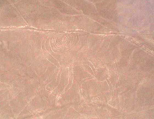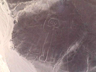 しばらく飛ぶと、始めの地上絵、鯨が現れる。これを皮切りに、三角形、宇宙飛行士、猿、犬、コンドル、蜘蛛、ハチドリ、パリワナ、オウム、手、木を上空から巡っていく。地上絵が現れるたびに、右の座席からよく見えるように旋回、その後左座席からよく見えるように旋回する。つまり、地上絵ごと(もしくは2、3の地上絵ごと)に左回りと右回りの旋回を連続して行うのだ。これがか〜な〜り〜気持ち悪い。旋回時はセスナはかなり傾きながら回っていく。遊覧飛行はわずか30分だったが、始めワクワク状態で窓の外、下を眺めていたのも束の間、途中からかなり気持ち悪かった。ゲロを吐くのを我慢しながら、踏ん張って地上に向けてビデオカメラを回す。唾液がしきりに口の中に上がってくる。フランス人の家族はというと、お母さんがもうグロッキー状態で、窓の外すら見れないようだ。隣のお父さんは、お母さんの背中をさすって気遣っている。僕の隣とパイロットの隣に座った娘二人は、涼しい顔で外を見つめているので、問題なさそうだ。