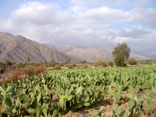 その後、水路へ。この水路は、砂漠の地下を流れる地下水を人為的に流し、取り入れるためのもので、プレインカのナスカ時代のものである。全く水の気配がない砂漠地帯に、澄んだ水が流れているのは一種の奇跡である。ナスカの人々は地下を掘って渦巻状の取り入れ口を作り、この地下水を利用していたのだ。この水は、はるか30kmも離れた山から流れて来るそうで、この水路によって灌漑、生活用水に使ったというから驚きだ。今でもその澄んだ水は流れ続けている。なるほど、この水路の周囲には、青々としたスイカ畑やサボテン畑が広がっている。砂漠地帯とは思えない。