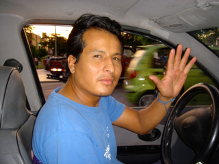 8:30にロビーへ、ほどなく昨晩のガイド男が車で迎えに来る。ホテルは11時チェックアウトだというので、それまでには遊覧飛行を終えて帰れると思う、と宿の支配人のオバちゃんに告げる。