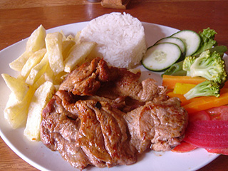 僕がロモ・サルタードの写真を撮っていると、隣のテーブルの家族が僕を見て笑っている。そして、お父さんが、彼らのカメラで家族の写真を撮ってくれるよう、僕に頼む。