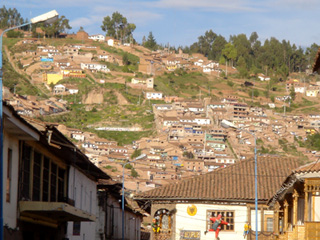 真昼のクスコはいきなり涼しい。標高3399m。テルミナルには多くの人々が行きかい、バスを待っている。テルミナルから、山の斜面に重なり合うようにして建つ、四角い茶色の家々を眺める。