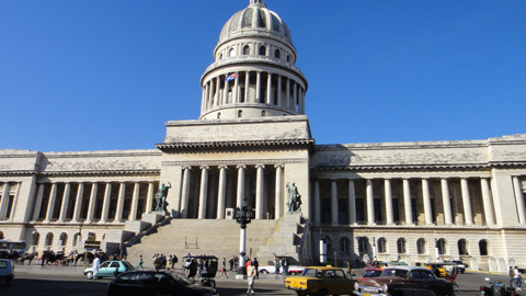 旧国会議事堂、カピトリオは、アメリカの国会議事堂そっくり。アメリカに支配されていた20世紀前半の遺産である。そばにはガルシア・ロルカ劇場の壮麗な建物。旧市街の古い街並みばかりでなく、これらの豪奢かつ美麗な巨大建造物が、ハバナ中心部にはあふれている。