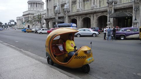 てんとう虫のような3輪タクシー。爽やかニーちゃん。