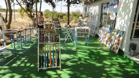 途中、ドライブインで休憩。ハバナよりも日差しが厳しく感じる。ここのこぎれいなお土産屋には、野球のバットが売っていた。さすが野球王国キューバ。