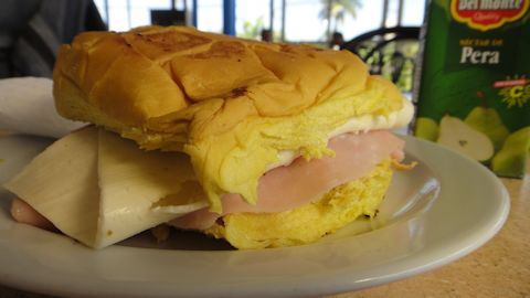 駅から再びトリニダーの旧市街の中心へ歩く。途中のファーストフード的レストランで、ハムチーズサンドを食べる。もう10時半だから、遅い朝食だ。