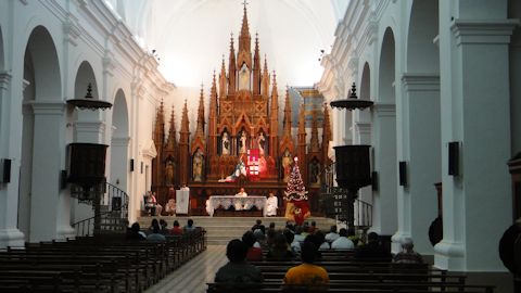 元旦の夜、ラ・カンチャンチャラも、カサ・デ・ラ・ムシカも、それほど盛り上がっていない。パレンケでは割と客が入っていて、音楽も元気だった。サンティシマ教会では、夜のミサが行われていた。宗教音楽と神父の言葉。初め、何かのコンサートを教会でやっているのかと思った。