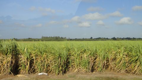 トリニダー→ハバナの車窓。見渡す限りのさとうきび畑