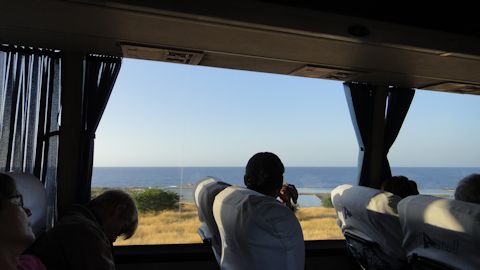 バスは一瞬、カリブ海沿いを走る
