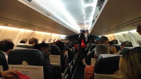 飛行機は7時離陸予定だったが、50分も遅れた。何しろ、一度バスで飛行機の近くまで行きながら、バスは引き返したのだ。でそのまま何の説明もなしにバスの中で待つこと1時間近く。乗客のキューバ人だかジャマイカ人の皆さんは、おおらかに待っている。腹を立てているような人はほとんどいない。