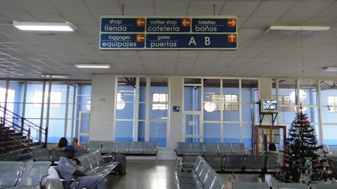 再びセニョール・マートスを探し始める。アエロガビオータ航空のオフィスの場所について、様々な空港の関係者に聞いても、みんな分からないか、適当な場所を教えてくれるだけである。と、全く偶然に、クバーナ航空の男性に「マートスさんはどこにいる?」と聞いたら、彼はマートス氏を知っているらしく、急に「あの人だ!」と30mほど先を指差した。そこには、蛍光服を着てチェックインカウンターの並びで何やら仲間と話し込んでいる男がいた。