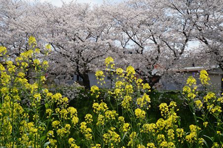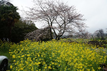 桜と菜の花が同時に咲いている。千葉県らしい風景だ。
