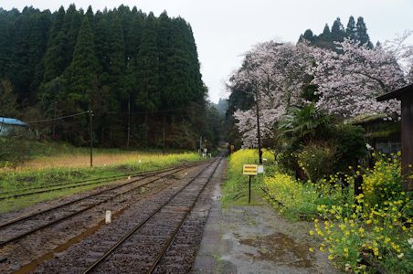 小湊鉄道養老渓谷駅。1日1往復のSLがちょうど到着した。