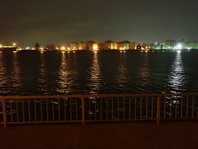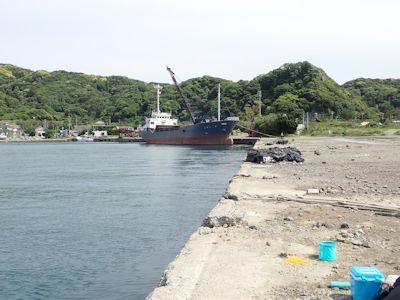 砂積み場岸壁の北側の端しか空いていないので、我々はそこに陣取る。