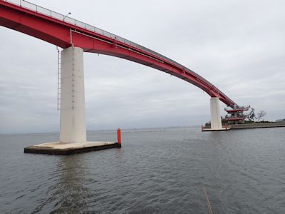 ゴールデンウィークだけあって沖ノ島の護岸沿いにはびっしりと車が停まっている。中には駐車スペースにテーブルやテントを出して飲み会しているグループもおり、マナーの悪さに辟易とする。