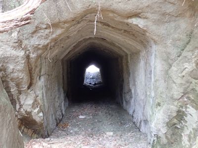 志駒林道を歩く。川から上がったところのトンネルは4つ目のトンネルで、さらに3つのトンネルをくぐる。