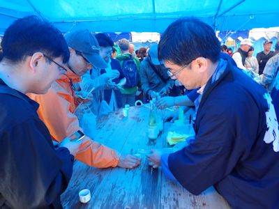食後、多々良北浜キャンプ場に移動。広々とした砂浜のキャンプ場には、びっしりと大小さまざまなテントが張られ、車が停まっている。砂浜のオートキャンプ場のような趣だ。