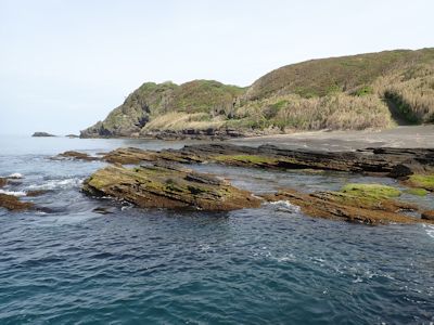 我々は人の多い浅場で始め竿を出していたが、島南西側にやや深い磯場が続くところがあるので、そこに移動して釣ることにする。