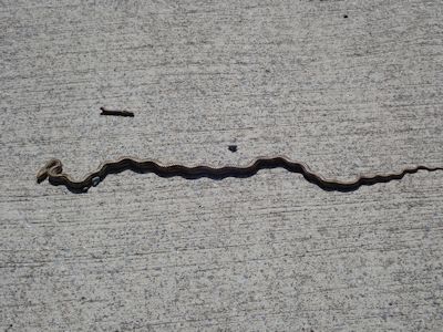 道の真ん中で動かないヘビ。シワシワ |