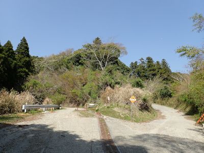 ここは、2月に房州アルプス(志駒愛宕山)と八丁山に登った際に、最後の最後で迷った末に日没間近に飛び出した林道である。前回は、ここから山中線を西に進み県道に出たわけであるが、今日はしばらく西に向かったところから山に入る。