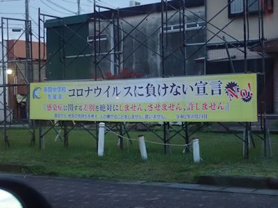 串間市の看板、「コロナに負けない宣言」