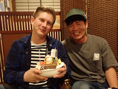 今日はルーマニア人同僚が誕生日だというので、仕事が終わった後、居酒屋で誕生パーティを開く。行く前に近くの洋菓子屋でケーキを買っていく。