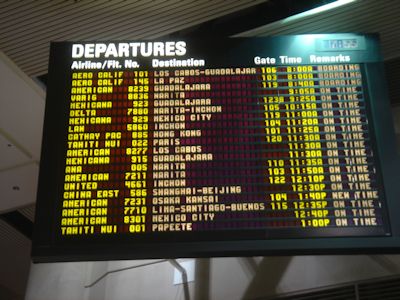 出発便。ロスアンゼルスの国際空港にて |