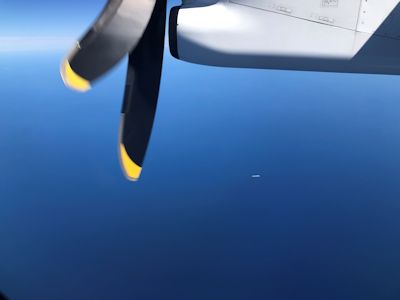 と、数分後には空に飛びあがって、いよいよこれから佳境、と身構えた頃に、前方から、なんかチーズの腐ったようなイヤな匂いがしてきたのである。と思ったら、私の目の前で一人の若者が突っ伏している。隣のおばさんが彼の背中をさする。