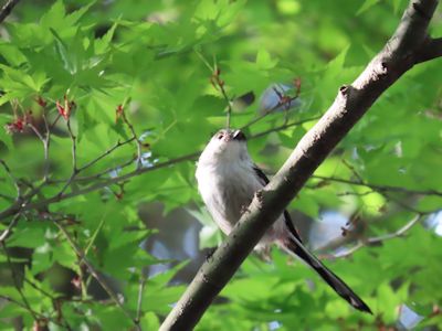 真上の樹上に現れたエナガ(鹿児島県曽於市) |