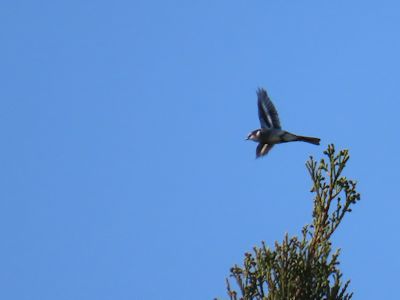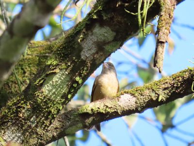 サンショウクイ(多分)が2羽くらいで真上の枝上に来た。枝上では鳴かなかった。撮影できず。