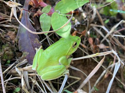 シュレーゲルアオガエル。体長5センチほどの愛らしいカエル