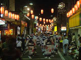 商店街主催の祭りは、東京のど真ん中なんだけどなぜか「阿波踊り」。中央線沿線の阿佐ヶ谷とか高円寺などでは、一時期「祭り戦争」が勃発し、各町の商店街で人を呼べる祭りイベントを検討した結果、日本各地の有名な祭りをコピーして持ってくる手法で阿佐ヶ谷は七夕祭り(オリジナルは仙台)、高円寺は阿波踊り(同徳島)を導入している。東京に限らず、全国的に様々な有名祭りがコピーされて他の街で行なわれる、いわば”他人のふんどしで相撲を取る”的全国展開が見られる。”よさこい”(オリジナルは高知)なんか今やいたるところでやってるでしょう。