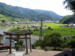 高台の神社から見る田園風景(兵庫県養父市) |