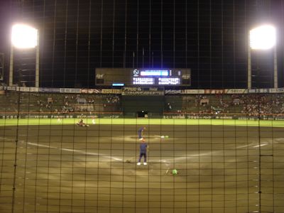 ついに本日のメインエベント、広島−中日戦。3連戦の初戦は、午後6時に薄暮の中試合開始。球場は満員。9割方が広島ファン。球場の壁には、『ありがとう、市民球場』の文字。