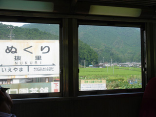 8月11日月曜日。大井川鉄道に乗車。ただし名物のSL(一日2往復)は残念ながら切符売り切れで乗れず。しかし、普通列車でも新金谷と千頭間の、広々とした大井川と山々の開放的な風景や、斜面いっぱいに広がる茶畑、寂びれた極小駅の風情を満喫できた。