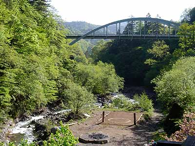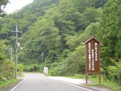 綿あめ雲が幾重にも広がってきた。ポツポツと雨が落ちる。途中、あの世界遺産、石見銀山へ抜ける道を横目に見ながら、僕は車を松江方面へ向ける。深く鮮やかな緑を湛えた山が連なり、その中を縫うように国道が走る。そして雲南市の手前で進路を東にとり、県道へ入る。ここからさらに深い山中へ分け入り、今回の野営地を探すのである。