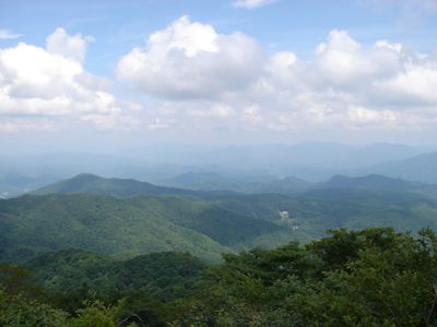 ともかく、山頂は不思議なところだった。標高1142m。周囲には、中国山地の山々が360°のパノラマで展開している。北が松江市、米子市、北東に大山(鳥取県)、西に大万本山、東に花見山、南には道後山、南西には庄原市、等々。無数の山々の頂が、この船通山の周りに眺望できる。