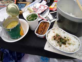 雨が降りそうなのですぐに炊事。腹はペコペコ。3時過ぎ、案の定雨が降り始める。大雨。傘差しながら炊事して食事。ご飯、さんまの缶詰、味噌汁、パイナップルの缶詰。