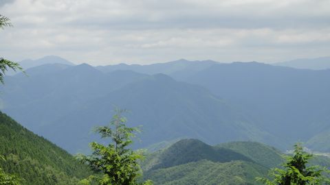 さらに山を登ると、平家が岳である。ここは、平家ゆかりの地。ここもまた山頂らしい山頂がなく、拍子抜けだったが、中国山地を一部見渡せた。昨日の大雨がウソのように今日は晴れ渡り、遠くの山並みまで見通せる。