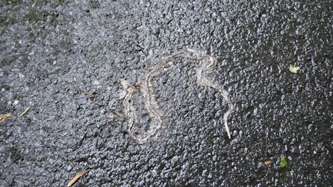 僕は「なんで?」とは思ったが、彼らも仕事だ、ここは言われたとおりにテントを移動することにする。ただ、大雨なので、とりあえずそのまま広場から下ろし、道端に置くことにした。テントの下に敷いていたダンボールも、水でぐにゃぐにゃになってしまった。