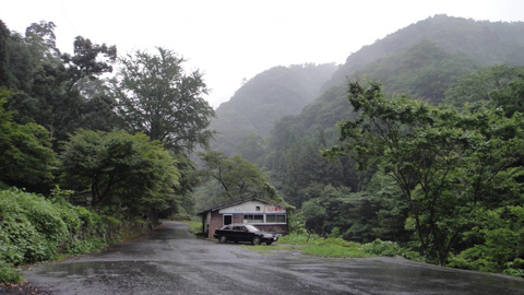 錦町の奥から山に入る。木谷峡という渓流沿いを走る林道を車で上がる。途中、気象庁の施設みたいな建物がある。さらに上がると、山の上から一台のバンが降りてくる。すれ違えそうな道幅ではない。この頃雨が再び降り出し、車中からの見通しが悪い。僕は通り抜けできるようバックする際、左後ろのバンパーを左側の岩壁にぶつけてしまった。満身創痍のインテグラが、さらに傷つく。ショックだ。