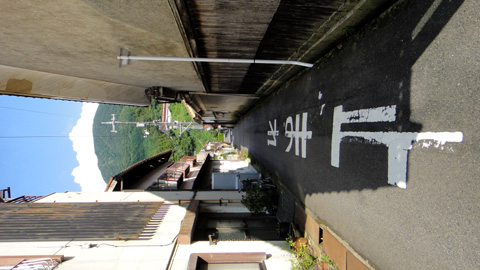 ここにはワサビ畑があるらしく、「野生のワサビではなく、栽培してあるワサビですから、盗まないでください」という警察署の小さな看板が道端にたたずむ。