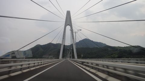 午後6時、福山競馬場を後にし、しまなみ海道を通って四国は愛媛県へ渡る。しまなみ海道は、瀬戸内海にある島々を渡り、広島県尾道と愛媛県今治を結ぶ高速道路。島々を繋ぐ巨大高架橋を渡るたび、車から雄大な瀬戸内海の風景、海に無数の島が点在する様子を眺めることが出来る。僕は左側の走行車線をゆっくりと走る。橋に来るたび、運転そっちのけで眼下の海と島を眺める。