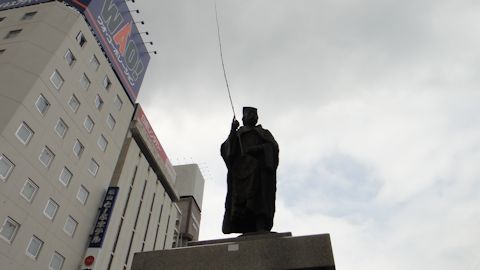 朝9時起床。宿をチェックアウト。車を駅近くの駐車場に入れ、福山の街を歩く。福山駅前には、釣り竿を持った老人の銅像が建っている。