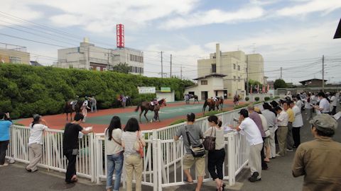 第1レースは15:30なので、もうとっくの昔に始まっている。もうすぐ第6レースだ。18:15出走。まだ日は暮れてないので、ナイターではなく薄暮競馬だ。
