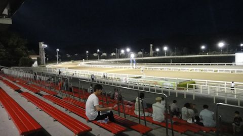 華やかなイメージがあるナイター競馬だが、観客が少なく、それでいてダートコースは明々と明かりに照らし出されているのが、寂しさを増幅させる。だが、騎手も馬も本気だ。それは伝わってくる。数少ない観客の僕が応援せねばなるまい。福山競馬場は結構賑わっていたが、ここでは経営が厳しい地方競馬の現状が目の当たりにされる。