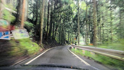 いよいよ夜の安居渓谷に突入する。細い山道、県道362号を車で登っていく。真っ暗。時折小さな集落を通り過ぎる。安居渓谷の入り口に、バンガローや休憩所がある。車でやってきた人々が情報収集しているのだろうか。さらにそこから登っていくが、真っ暗なのでもう野営場所を探すことは無理だ。だが細い道を車で走り続ける。雨が激しくなってくる。どこをどう走っているのか分からないまま、1時間くらい真っ暗な林道を走り続ける。真っ暗で車のライトが照らすところ以外何も見えない。車の車輪を踏み外そうものなら大変な事態となる。行き止まりになったらバックして転回などは恐ろしくて出来ないような細い道だ。結局迷路のような林道を一周した挙句、元の道に戻ってしまった。結局この日は林道の避難帯に車を停めて、車の中で眠ることにする。雨は断続的に降り続いている。